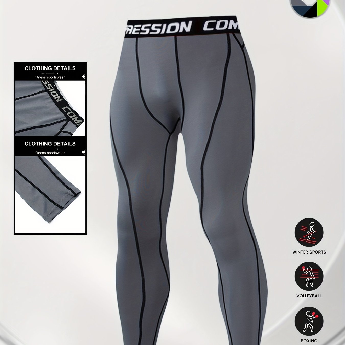 TEMU 남성 가을/겨울용 피트니스 레깅스, 타이트핏, 속건성 스포츠 바지 (레터 허리 밴드), 러닝 및 야외 운동용 단색