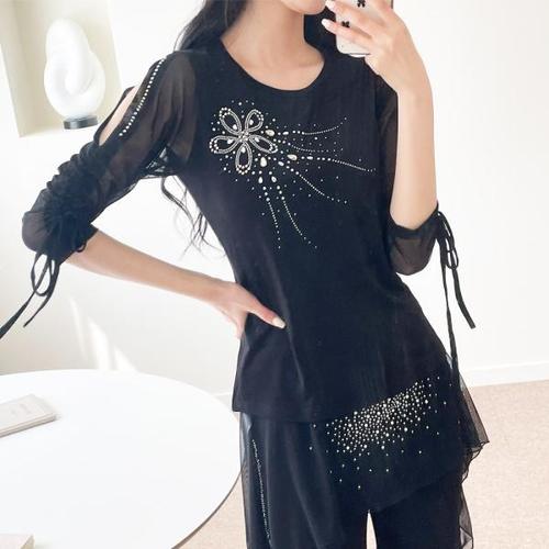 까르죠아 보석 축제 이중 블라우스 스포츠 줌바 모던 사교 차밍 라인 댄스복