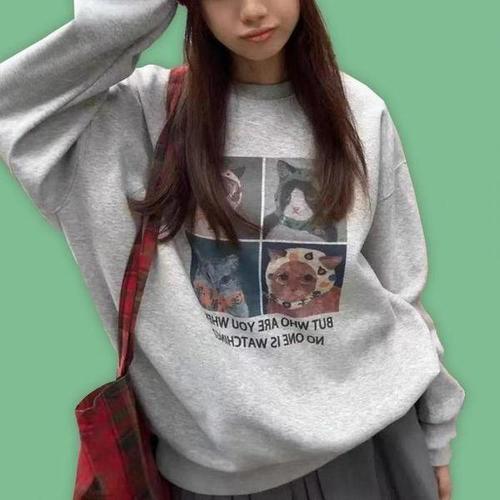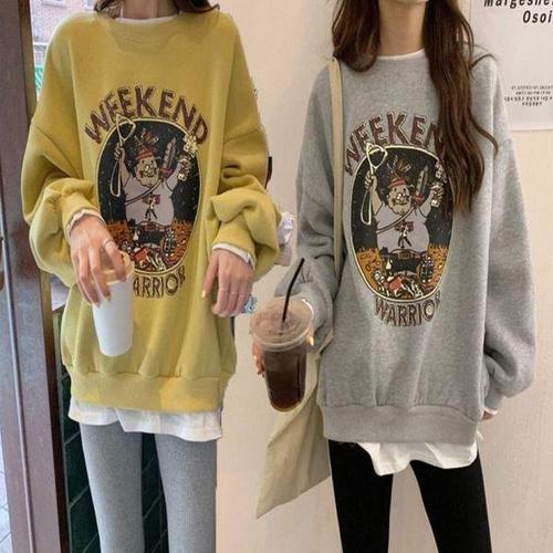 [셀러허브_여성트랜드패션]여자 맨투맨 기모 겨울 티셔츠 프린팅 루즈핏 안감