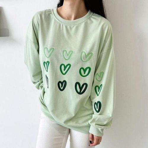 [셀러허브_여성트랜드패션]여성 프린팅 맨투맨 하트 편한 겨울 가을 루즈핏