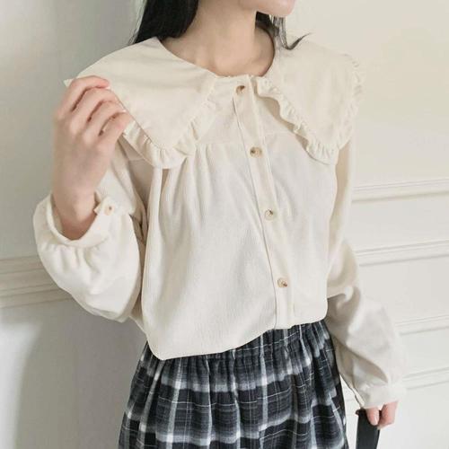 [신상오픈런]여성 루즈핏 코듀로이 블라우스 프릴 빅카라 디자인