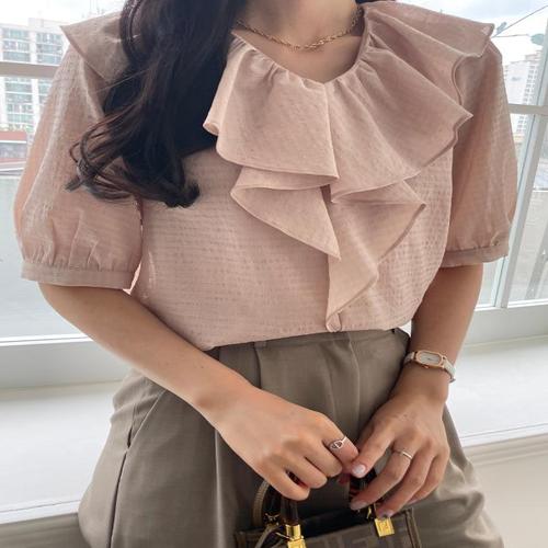 라운드 카라 프릴 블라우스 3COL / WBE3L03513