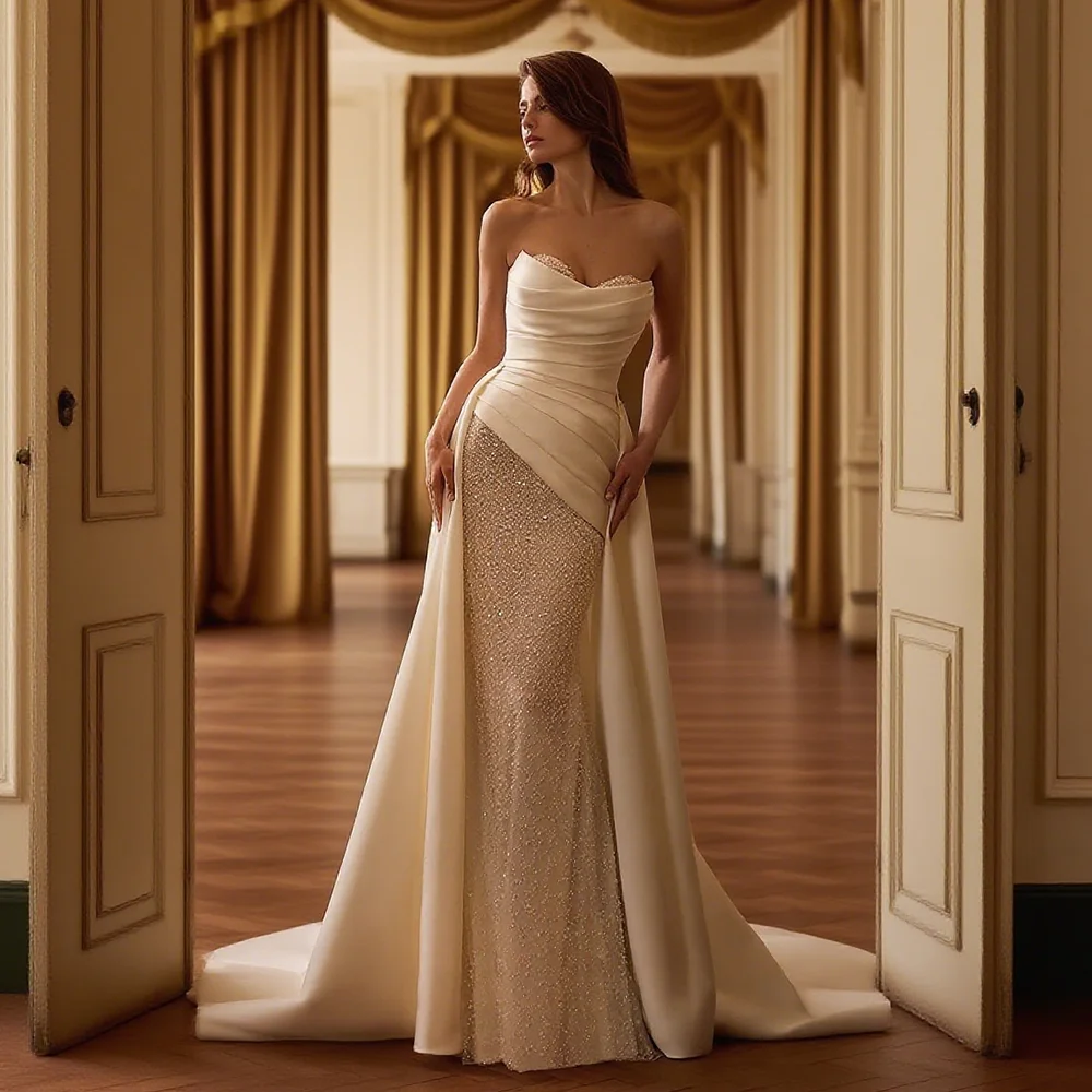 교토 화이트 심플 스트랩리스 라인스톤 웨딩드레스 홀터 머메이드 플로어 기장 맞춤 레이스업 백 정장 이브닝 2025