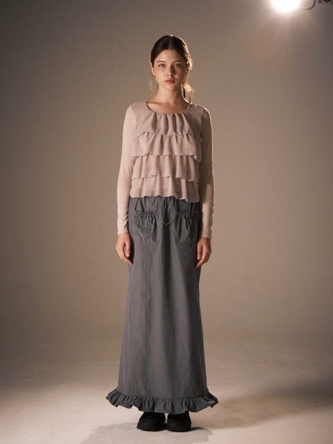 [피브스피브스] 프릴 머메이드 맥시 스커트 / 라이트 그레이