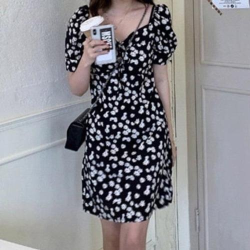 [엄지척]오프숄더 퍼프 소매 플라워 꽃무늬 셔링 미니 원피스_19871793_667501