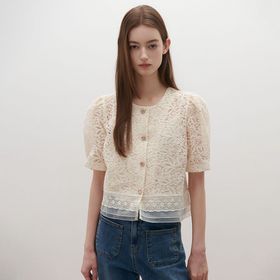 [5/5 예약배송]플라워 레이스 퍼프 블라우스 O262T254