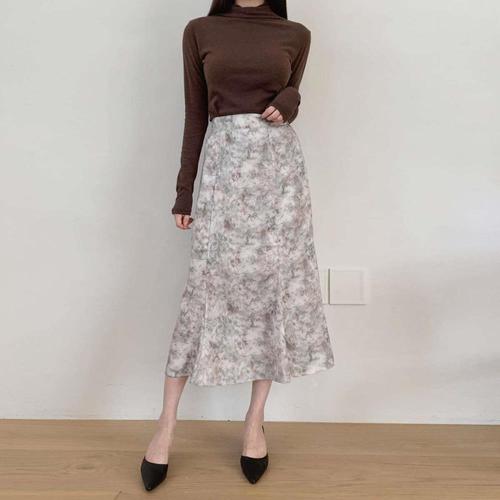 여성 플라워패턴 인어공주 하이웨스트 롱스커트
