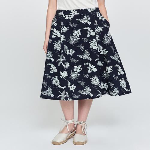 헤지스 여성 플라워 프린트 스커트 네이비 (HSSK5B502N2)