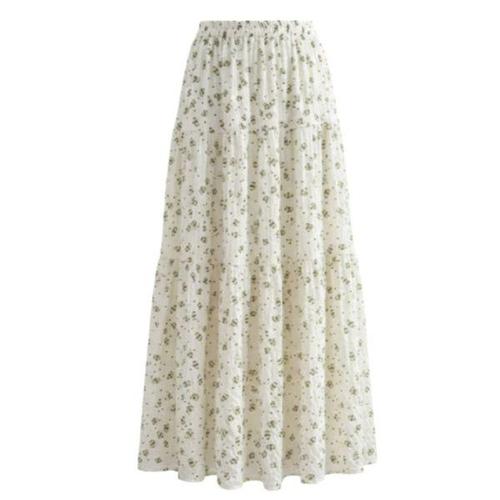 마켓피아 여성용 봄여름 플라워 플리츠 밴딩 롱 스커트