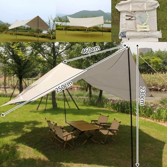 650g 초경량 해먹 부시크래프트 스퀘어 프로타프 방수포 3.5X3.5m 20d 양면 실나일론 21탭 플라이 바샤