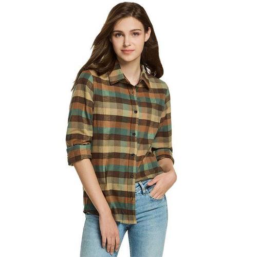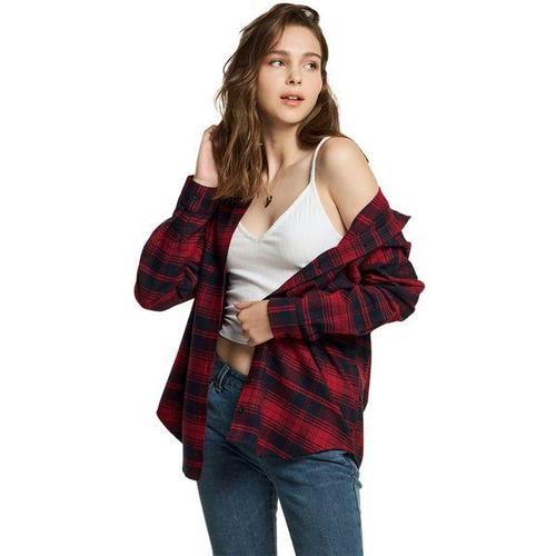 CQR 여성 면 체크 루즈핏 플란넬 셔츠 CQ-WOF008