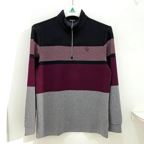 [그린조이][행복한백화점][그린조이]하프집업 스트라이프 긴팔 티셔츠 와인 남성 GF24KL21M