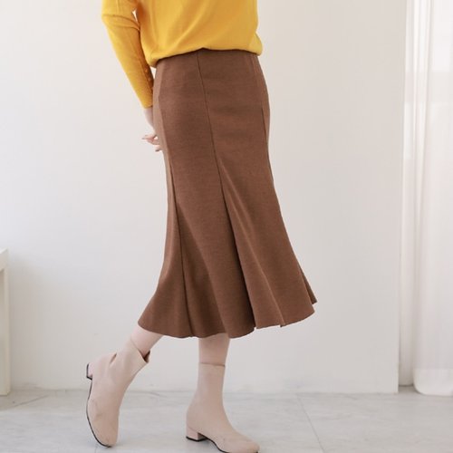 [옷자락] 여성 슬림라인 톤다운 머메이드 니트 밴딩 롱 스커트