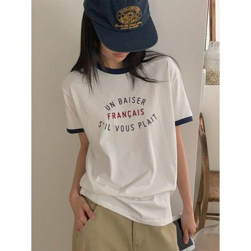 [럽스]플레트링거반팔티/배색 텍스트 프린팅 티셔츠