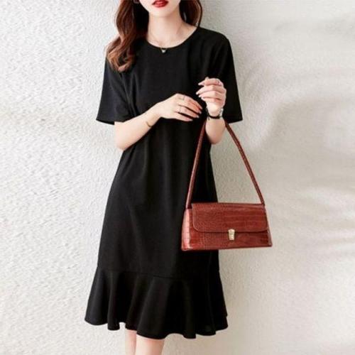[에이치플러스몰]단아 심플 캐주얼 모던 블랙 필수템 반팔 원피스 플레