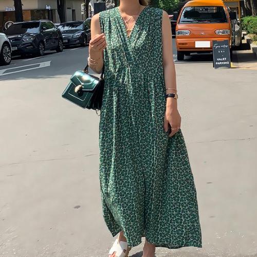 [휴드]플레아즈 플로워 민소매 원피스