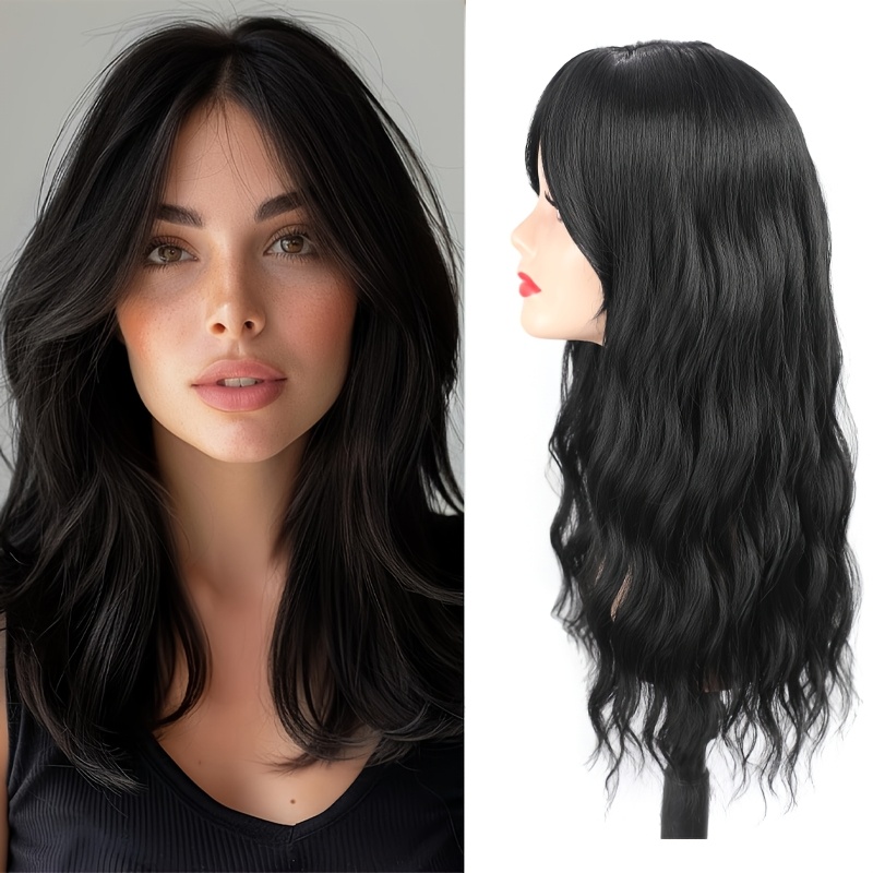 TEMU 26 "여성 스타일 가발 블랙 브라운 하이 레벨 느낌 8단 프린지 빅 웨이브 롱 컬리 헤어 유럽 및 미국 스타일 데일리 패션 인품 뮤직 페스티벌 파티 파티 범용 풀 헤드 가발