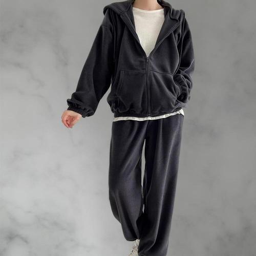 [옷자락]여성 겨울 플리스 주머니 박시 후드 집업 조거팬츠 세트