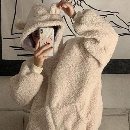 [엄지척]베어 후드 소프트 플리스 여자 양털 집업_20342736_667501