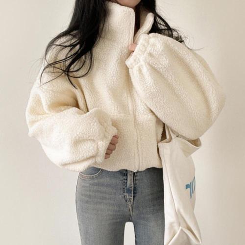 여성 겨울 뽀글이 후리스 플리스 하이넥 크롭 집업 자켓 WFL8WWO