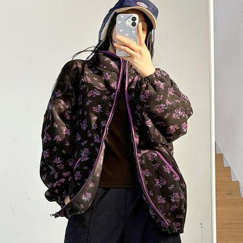 나야홍 / 빅사이즈 601 컬러플라워집업후리스 DPOV950