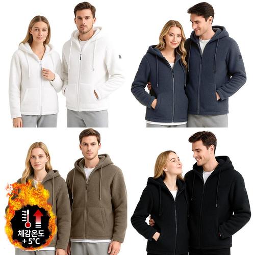 남여공용 커플용 오버핏 플리스 후드 집업 보온 양면 기모 아우터 포켓 자켓