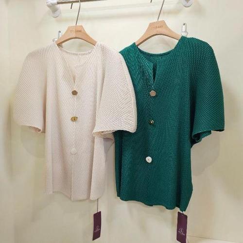 [체이스컬트][본사]여성 플리츠 주름 반팔 셔츠-DBRG5574D01