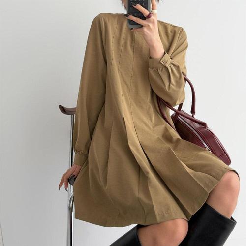 [미라클세븐]여성 봄철 스타일 플리츠 라운드넥 미니 드레스 결혼식용
