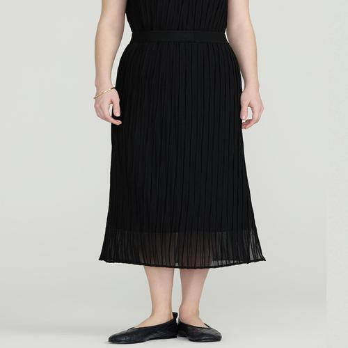 [D-PLEATS] 블랙 플리츠 밴딩 롱 플레어 스커트 (DLSK5BP22BK)