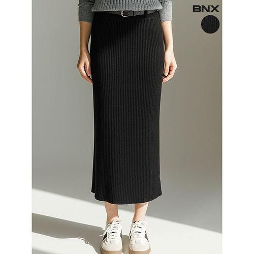 [BNX]여성 벨트 세트 니트 플리츠 스커트