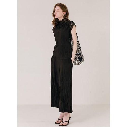 [막스까르띠지오]블랙 플리츠 후드 베스트 팬츠 세트