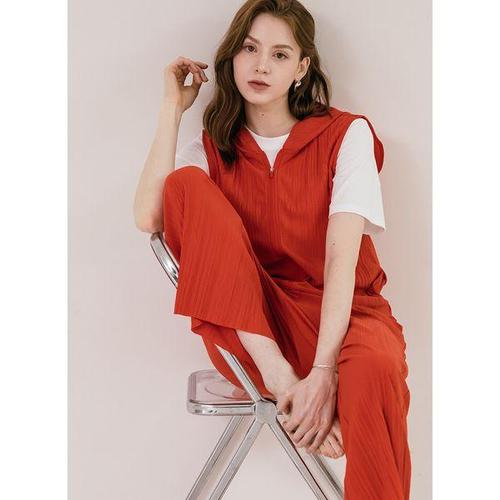 [막스까르띠지오]오렌지 플리츠 후드 베스트 팬츠 세트
