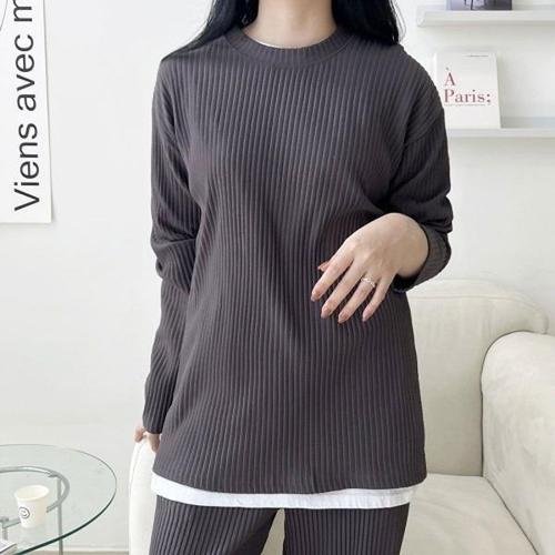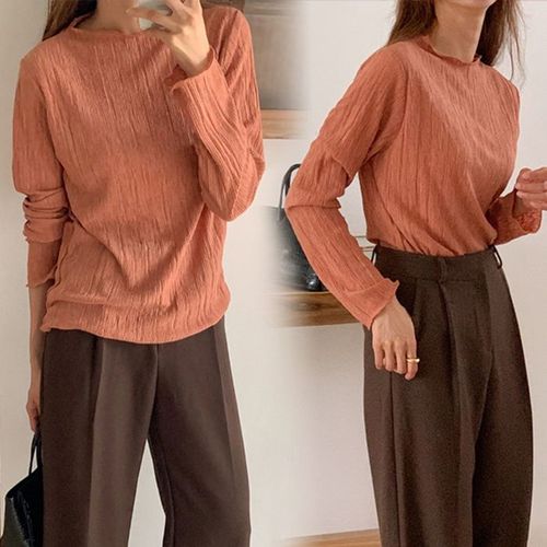 [엄지척]여자 긴팔 플리츠 라운드넥 티셔츠 봄 가을 캐주얼룩_19601030_667501