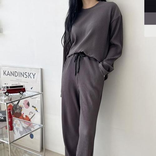 [오너클랜]인기상품 여성 플리츠세트 라운드넥 티셔츠 일자 밴딩팬츠 [WFFT5CV_250918]