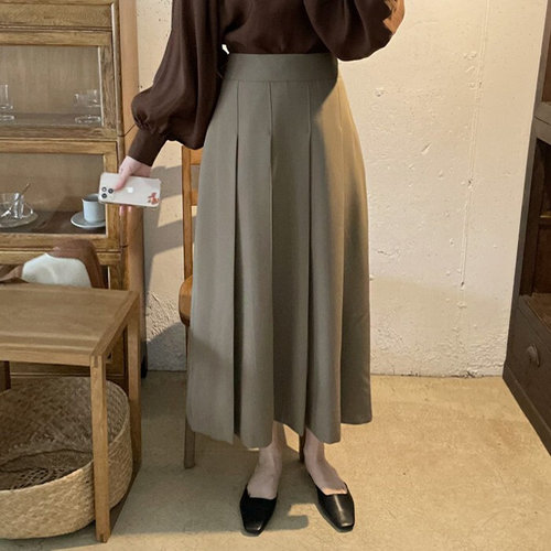 cammello 하체커버 언발란스 핀턱 플리츠 롱스커트 포멀 주름 치마