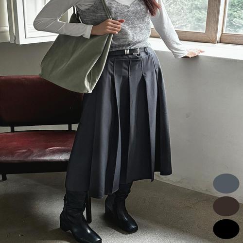 [위시드]모던 벨티드 백 밴딩 플리츠 롱 스커트 (WIBCSK004)