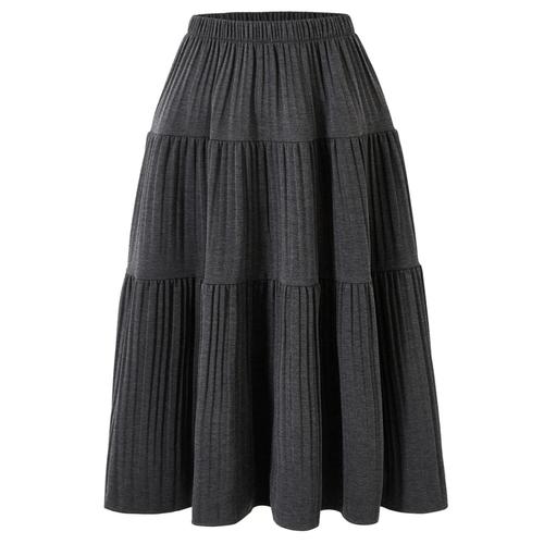 ELLE PARIS 여성용 울라이크 소프트터치 하프 밴딩 롱 플리츠 스커트
