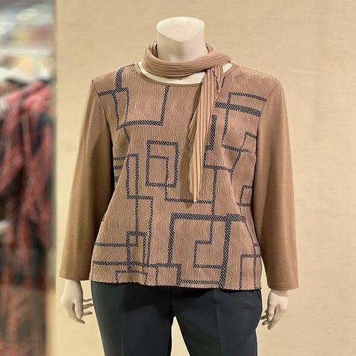 [벨리시앙]플리츠 주름 기하학 패턴 블라우스 +스카프세트(2color) TB4302