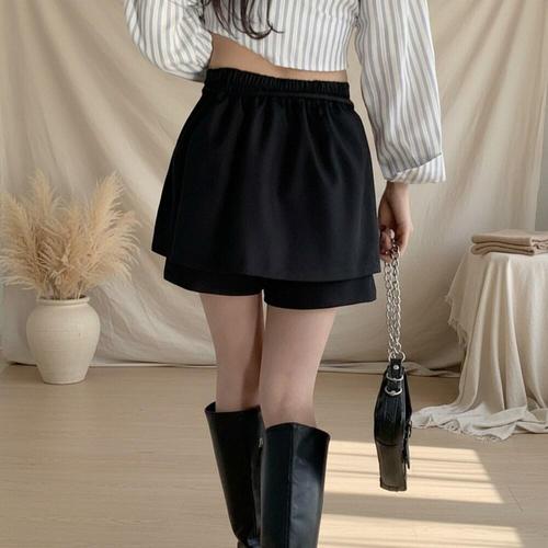 슈팅스타 / 캐주얼 고무밴딩 티어드 캉캉 치마바지 미니 스커트