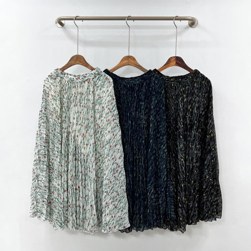 미즈큐즈 / 꽃나염 포인트 플리츠 와이드 치마바지