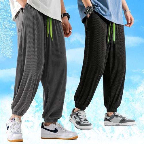 남자 여름 쿨링 조거팬츠 블랙 회색 플리츠 밴딩 와이드 트레이닝 WFNQKR9