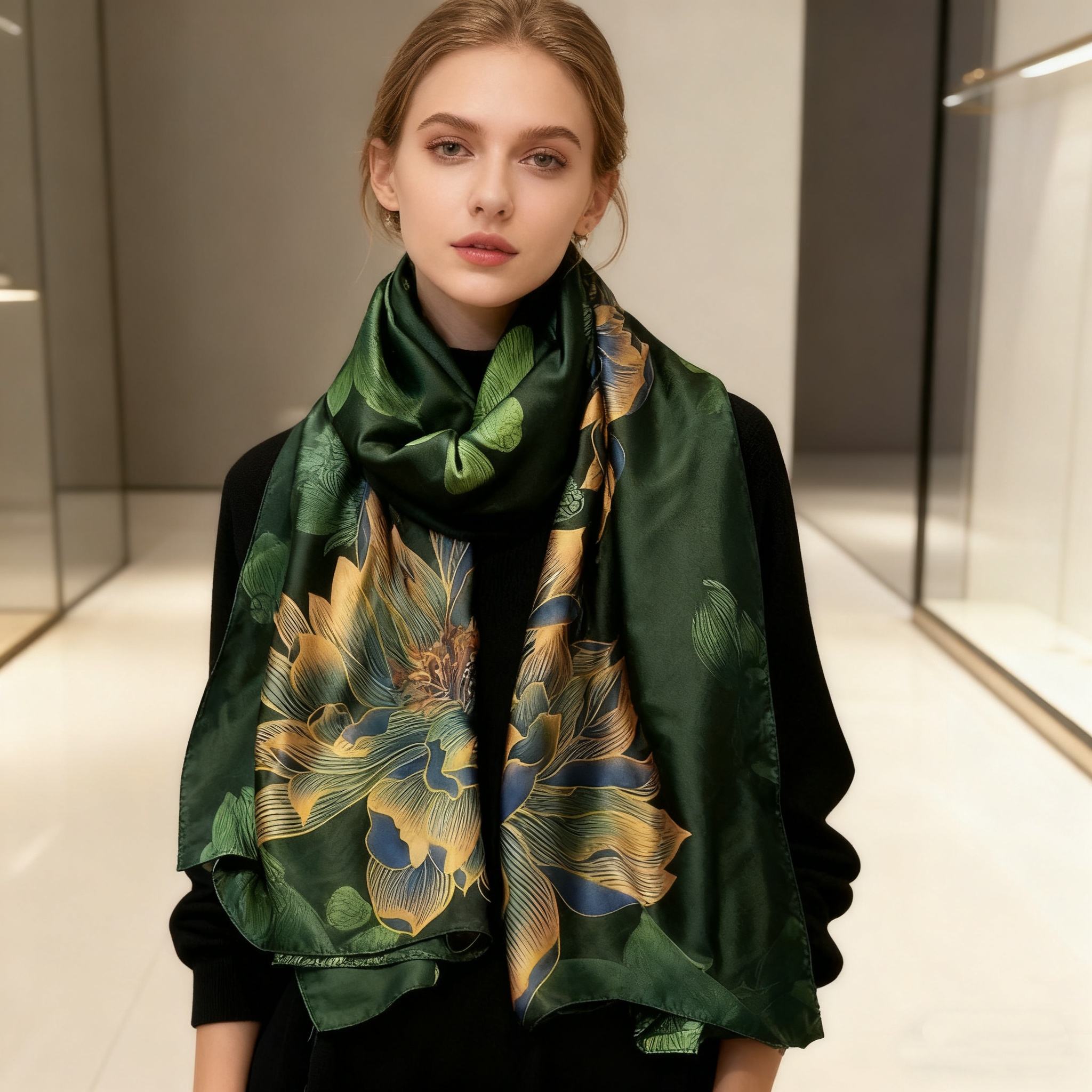 TEMU 여성용 그린 플로랄 프린트 경량 스카프 - 우아한 폴리에스터 쇼울, 통기성 좋고 스타일리시한 봄/여름 외출용