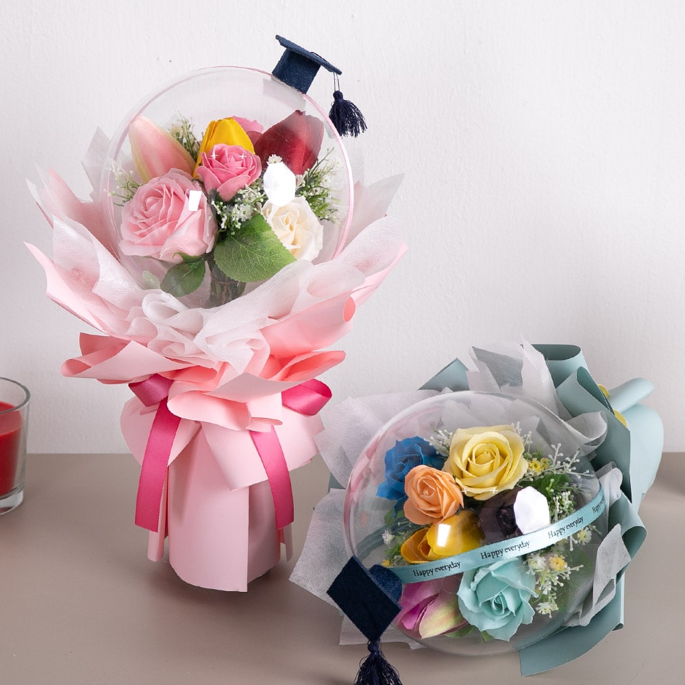 비누 장미 조화 꽃다발 학사모벌룬 35cm 2컬러 인테리어 꽃 선물 장식