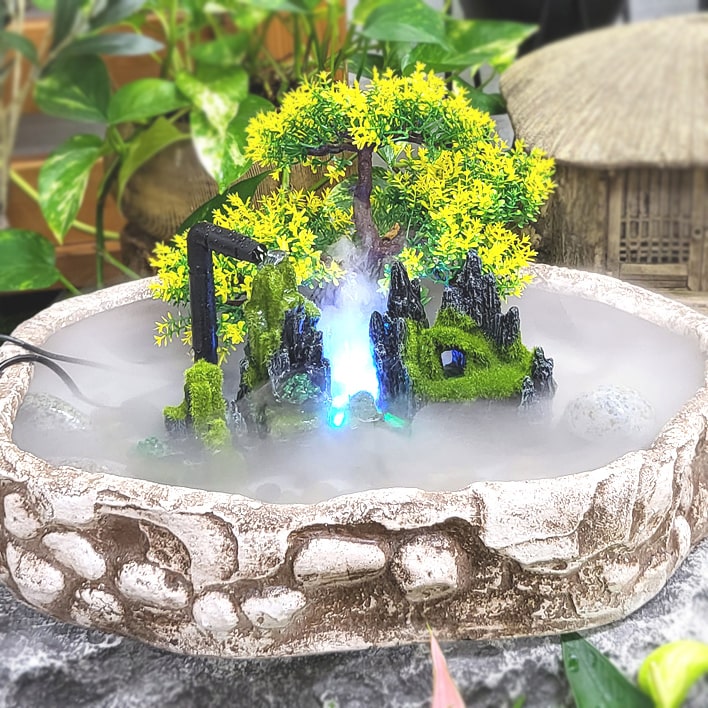 미니 돌수반과 이끼바위산폭포 미니분수대 힐링인테리어 분수가습기 실내정원 홈가드닝