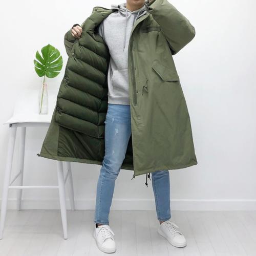 [화이트빌딩]남자 오버핏 개파카 피쉬테일 롱 야상 패딩 점퍼