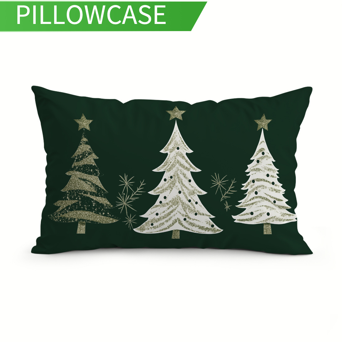 TEMU 1개 그린 워터컬러 크리스마스 트리 단면 프린팅 베개커버 - 피치 라이트 베이지 벨벳 쿠션 케이스 30*50cm, 페스티브 홈, 시즌 , 아티스틱 프린트, 컨템포러리 디자인, 지퍼 클로저, 세탁기 사용 가능, 홈 액세서리, 인테리어 , 홈 데코레이터