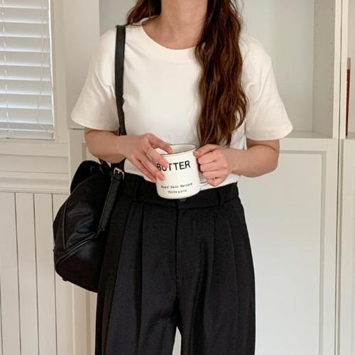 [옷자락]여자 라운드넥 간절기 피치기모 심플 베이직 반팔
