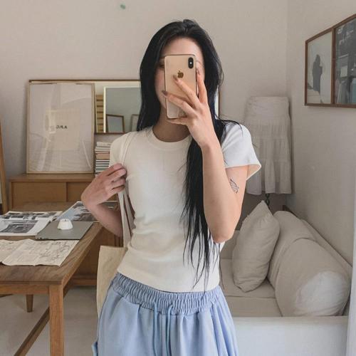 [다잇템_패션]여자 미니멀리즘 피치기모 데일리 환절기 반팔