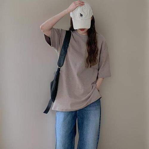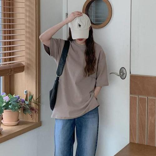 천하오 1+1 여성용 순면 반팔 티셔츠 루즈핏 상의 TZ1182