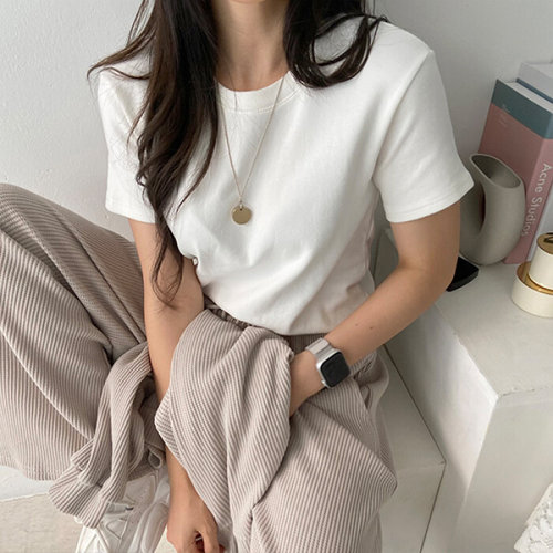 [옷자락]여자 라운드넥 피치기모 베이직 심플 크롭 반팔